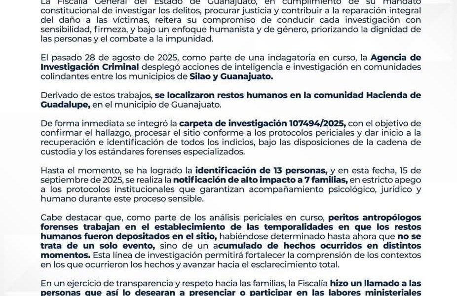 La violencia vuelve a sacudir a Guanajuato capital Guanajuato, Gto. – La Fiscalía General del Estado informó que en la comunidad Hacienda de Guadalupe fueron localizados...