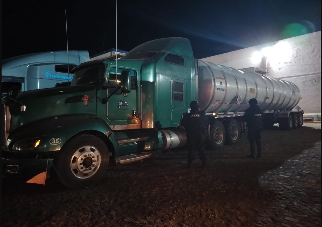 Se trata de una unidad marca Kenworth, acoplada a un semirremolque tipo tanque, que se encontraba estacionada sin operador. Al inspeccionar el vehículo, los elementos confirmaron que el tanque estaba abastecido con diésel y que presentaba inconsistencias en los rombos de riesgo y sellos, los cuales no coincidían con los oficiales, lo que generó sospechas sobre la legalidad del combustible transportado.