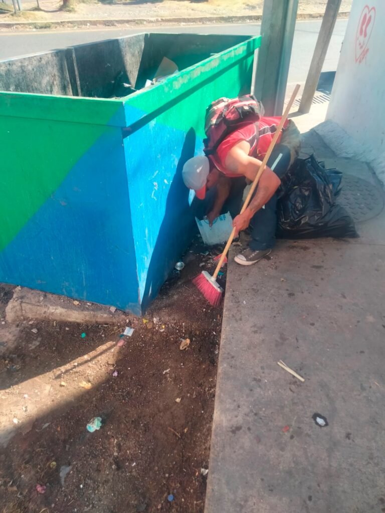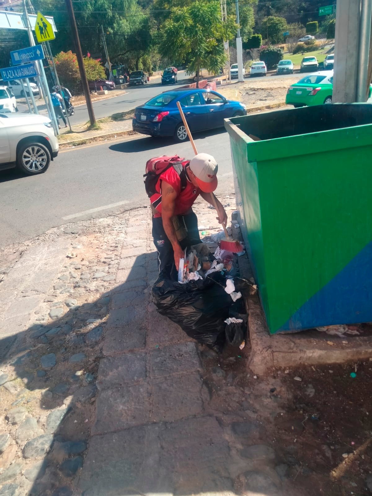 En la zona de Marfil, a un costado de la gasolinera, un pepenador realizó el día de ayer, lunes 15, una labor que pocas veces se reconoce: limpiar por completo los desechos acumulados alrededor de un contenedor de basura, resultado de la falta de cultura y responsabilidad de algunas personas.