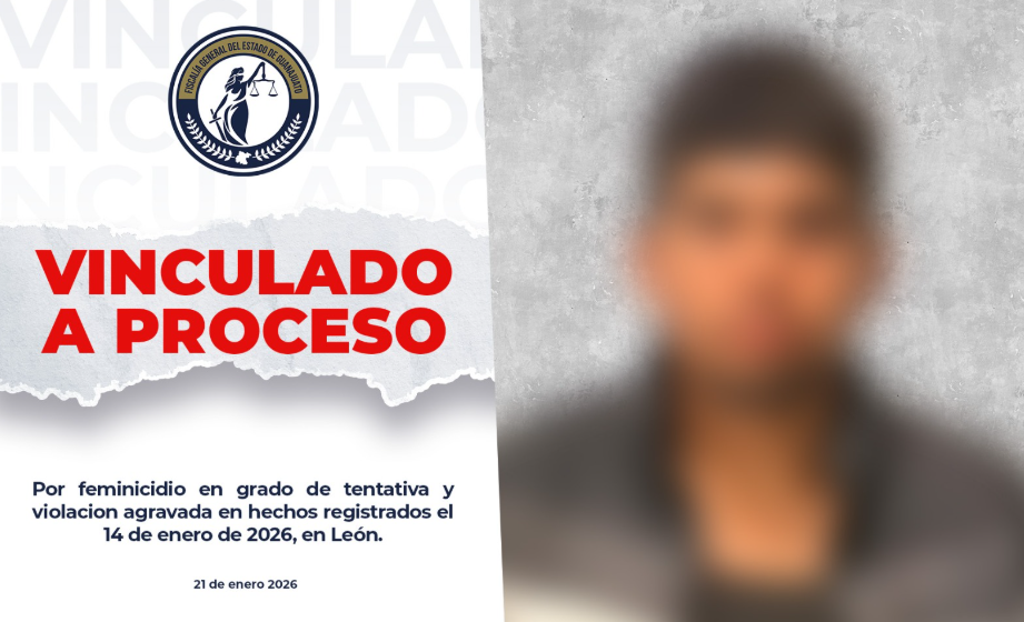 La Fiscalía General del Estado de Guanajuato consiguió que un Juez dictara vinculación a proceso penal y decretara la medida cautelar de prisión preventiva en contra de EDWIN ARTURO “N”, señalado por su probable participación en los delitos de feminicidio en grado de tentativa y violación agravada, cometidos en perjuicio de una adolescente en el municipio de León.