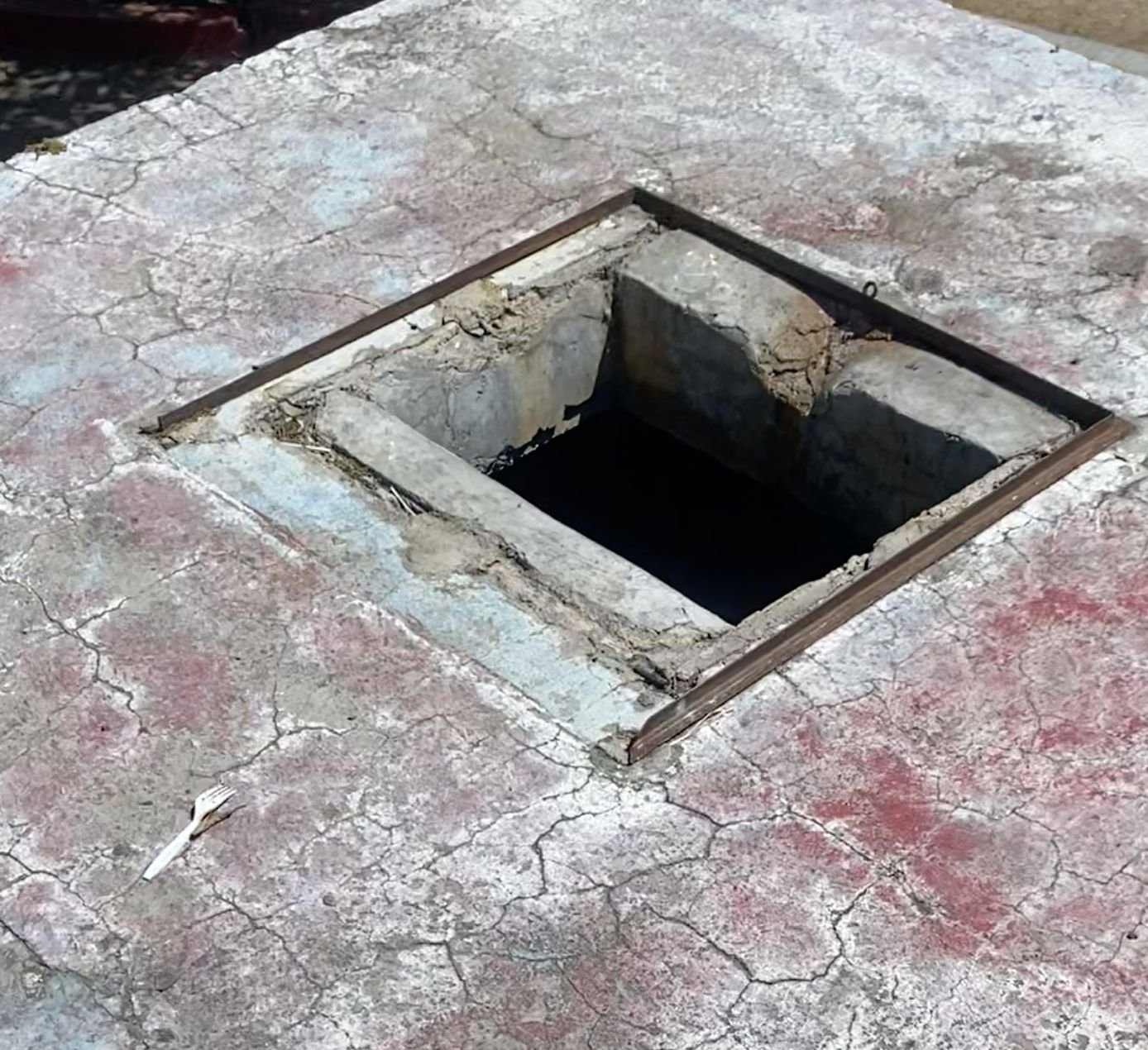 La preocupación crece al considerar la presencia constante de niñas y niños que juegan en el área, quienes podrían caer accidentalmente si no se percatan del peligro. Padres de familia advierten que, aunque se mantenga vigilancia, basta un descuido para que ocurra una tragedia. La falta de mantenimiento y supervisión en este tipo de infraestructura evidencia una omisión que no debería existir en espacios públicos.