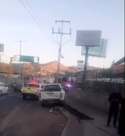 Una camioneta negra abordó la banqueta, donde las personas suelen esperar los camiones, y embistió a dos personas que esperaban su turno para subirse al trasporte público. Dicho vehículo provocó que otra camioneta blanca se estampara con un barandal más adelante.