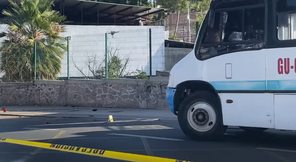 Una camioneta negra abordó la banqueta, donde las personas suelen esperar los camiones, y embistió a dos personas que esperaban su turno para subirse al trasporte público. Dicho vehículo provocó que otra camioneta blanca se estampara con un barandal más adelante.