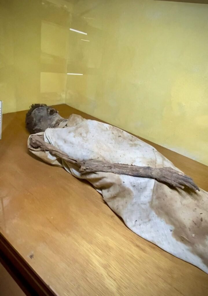 Hoy, su figura permanece en exhibición, conservando rasgos muy definidos como el cabello rizado y los labios entreabiertos, convirtiéndose en un silencioso testimonio de una vida sencilla y un destino trágico.