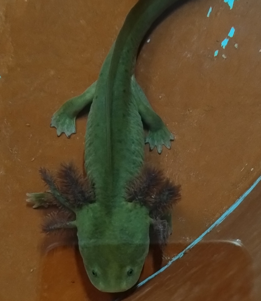 El ajolote es una salamandra del género Ambystoma que pasa toda su vida en el agua y conserva rasgos larvarios incluso en la etapa adulta. Es un animal de sangre fría que puede respirar mediante branquias, pulmones, la cavidad bucofaríngea y la piel. Una de sus características más estudiadas es su extraordinaria capacidad regenerativa.