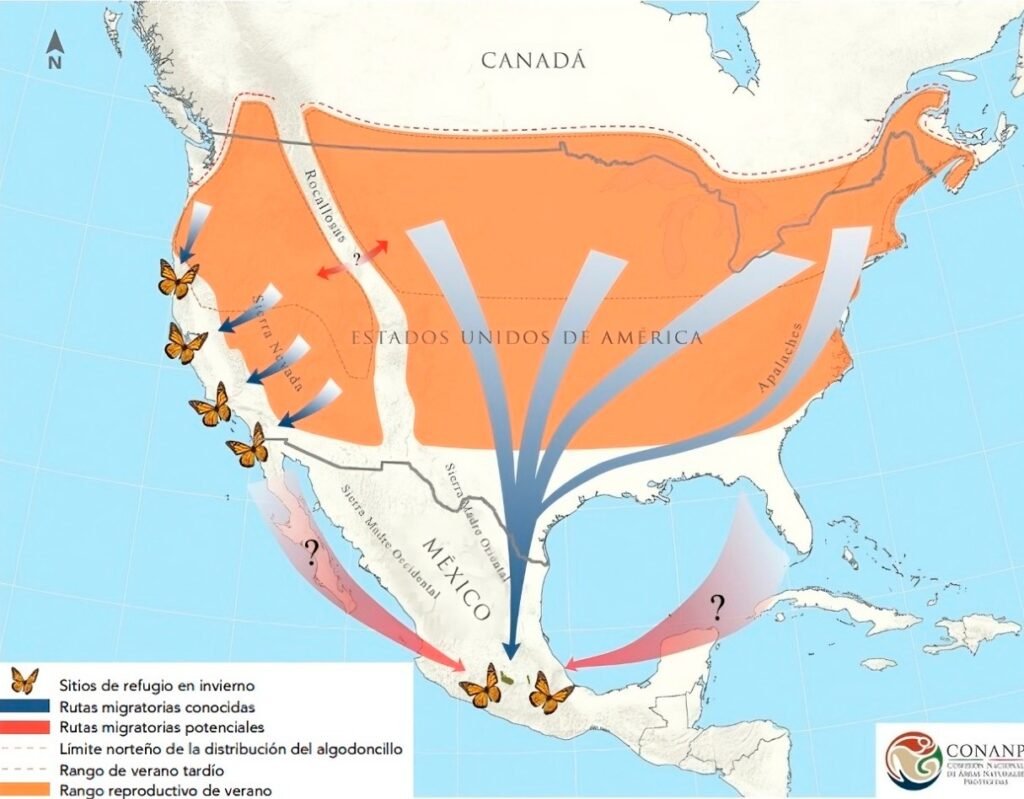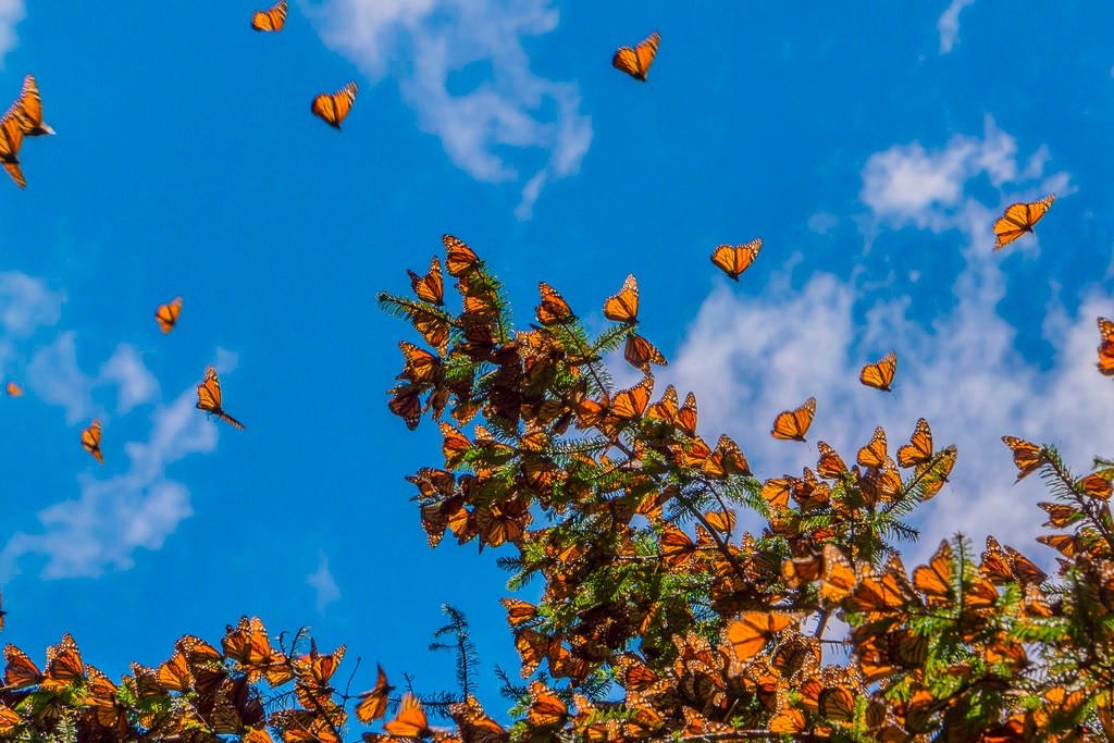 A finales de octubre y principios de noviembre, los primeros grupos de mariposas comienzan a posarse sobre los oyameles de los santuarios ubicados en Michoacán y el Estado de México. Durante la última semana de octubre, sus alas anaranjadas y negras pintan el cielo y los árboles, transformando el paisaje en un espectáculo natural que asombra a visitantes y lugareños por igual.