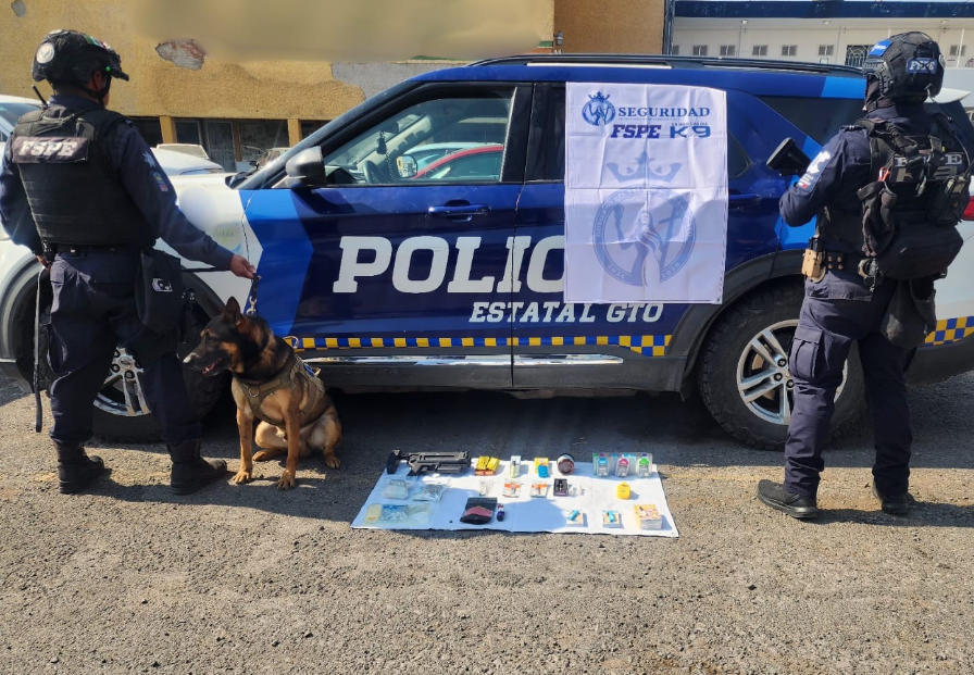 El primer aseguramiento ocurrió en Salamanca, durante una inspección en una empresa ubicada dentro de un parque industrial. En el lugar, el oficial canino Amigo marcó de forma positiva 15 paquetes. Al revisarlos, se localizaron 17 vapeadores y 160 dosis de probable marihuana, además de 250 dosis de gomas que contenían la misma sustancia.