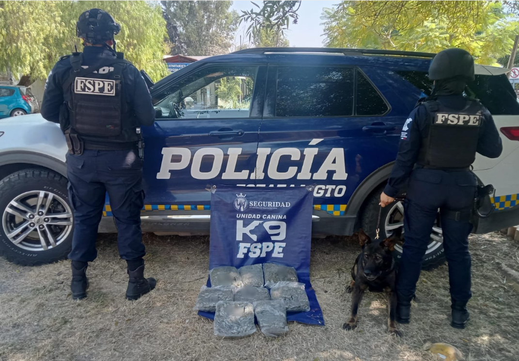 El segundo hecho tuvo lugar en León, en una empresa de mensajería de la colonia Industrial Delta. Durante las revisiones, el oficial canino Polly detectó un paquete que contenía ocho bolsas selladas al vacío con hierba verde y seca con características de marihuana, equivalente a alrededor de 4 mil 174 dosis. La guía de envío indicaba como destino Piedras Negras, Coahuila.