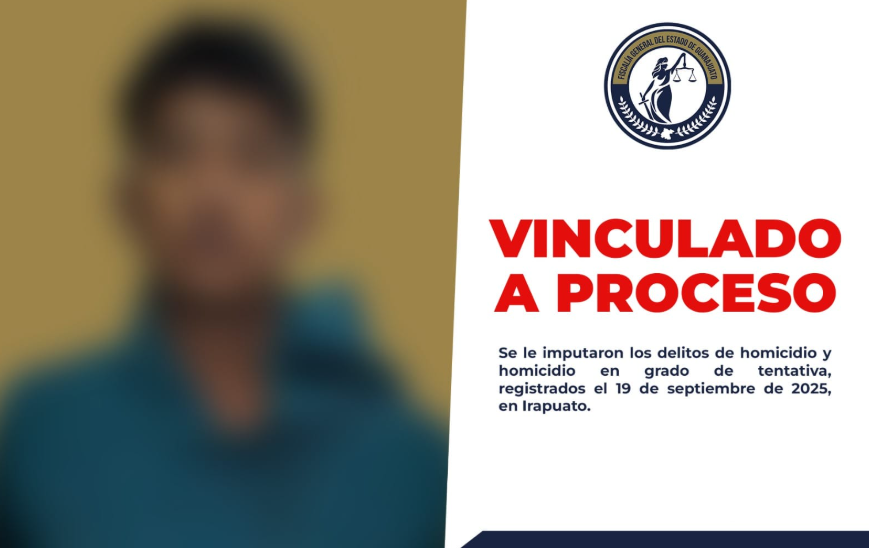 La Fiscalía General del Estado de Guanajuato detuvo a Miguel Ángel “N” por su presunta participación en los delitos de homicidio y homicidio en grado de tentativa, cometidos contra tres personas en el municipio de Irapuato.