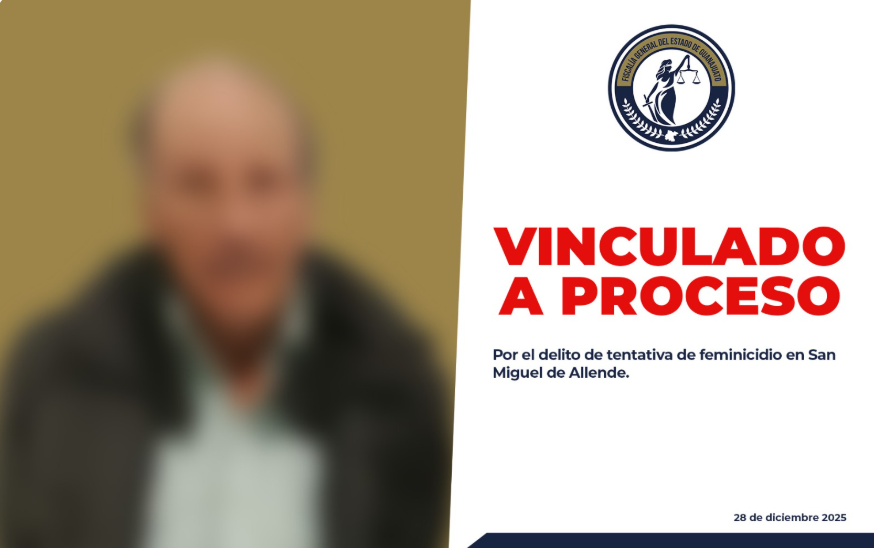 La Fiscalía General del Estado de Guanajuato ha vinculado a proceso a Gerardo “N” como presunto responsable del atentado de feminicidio en la comunidad Puente del Carmen, San Miguel de Allende. El atentado ocurrió el pasado 25 de diciembre.