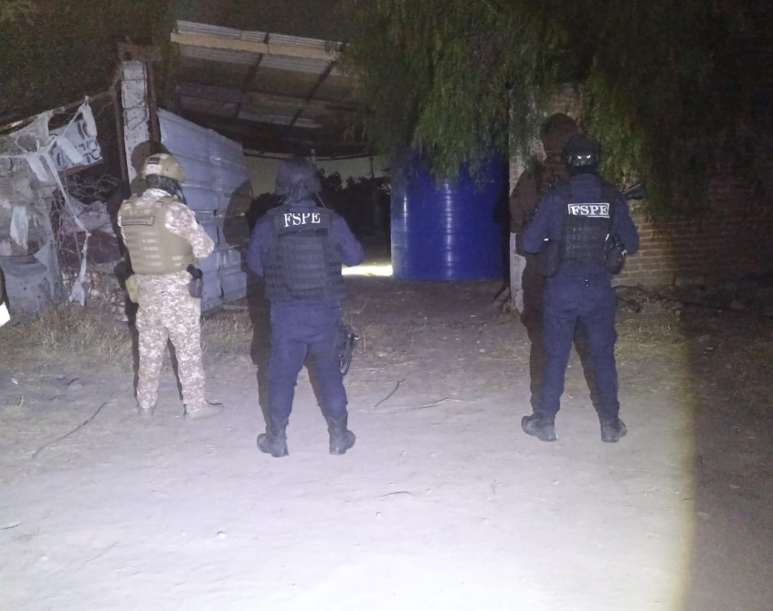 El hallazgo se registró durante recorridos sobre un camino de terracería, donde el personal operativo percibió un fuerte olor a combustible. Ante esta situación, los agentes realizaron una inspección a pie en un área de campo abierto, localizando un predio con el acceso abierto y varios contenedores que almacenaban hidrocarburo.