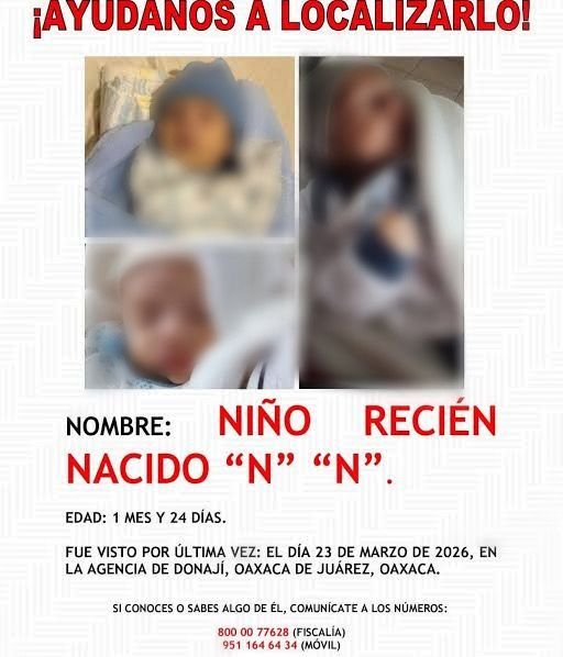 Un recién nacido de apenas un mes de edad desapareció en Oaxaca, desatando una alerta urgente de búsqueda y una investigación que apunta a un posible caso de trata de personas.